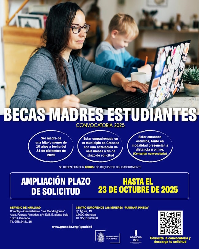 -Estar empadronada en el municipio de Granada con una antelación previa de seis meses respecto a la fecha de finalización del plazo de solicitud.